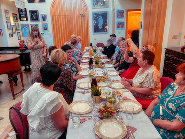 A fantastic dinner was served, Shabbat candles were lit and blessings recited for the wine and bread. A local Pastor shared from the Jewish lectionary, the portion of the week “Vaera,” speaking about Abraham, who left a great example of faith for us by trusting God in extremely difficult times. It was counted to him as righteousness. He explained the scriptures speaking about the ancestors of Abraham in such a way that it started to unfold and shine for many of the listeners for the first time. His wife, a writer, and teacher, shared about the story of Joseph and the ability to love God and thank Him even in very challenging situations. The talk was so full of hope, the listeners responded with all their hearts. A video clip was shown of the testimony of one of the Massacre survivors from October 7th. She shared her miraculous story of being saved by God during the horrific attack on the kibbutz near Gaza by Hamas terrorists. The leader of the Netanya Holocaust Survivors’ group, also shared her heart with the participants of the Shalom House, offering words of support and gratitude.